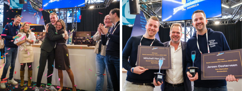 Ook bij de leermeesters was de strijd ongekend, met een uitslag die heeft geleid tot twee winnaars: Jeroen Oosterveen van Ron Gastrobar en Mitchell Hendriks van Grand Hotel Huis ter Duin kregen allebei de titel Beste Leermeester Horeca 2024/2025 uitgereikt.